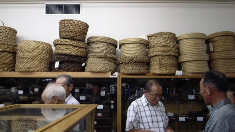 ある程度お話を聞いて、「ワラの目」の準備ができたら、夜の資料館ツアーへ!ここ明宝民俗資料館は、所狭しとたくさんの民具が収蔵されており、毎回毎回来るたびに「こんなものあったっけ!?」という新しい発見があるくらいです。今回はこの数ある民具の中から「ワラ細工」にスポットを当てて、ワラでできたものを見つけては、達人から話を聞きます。