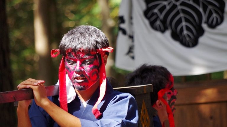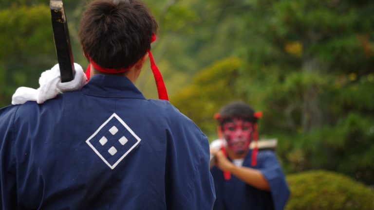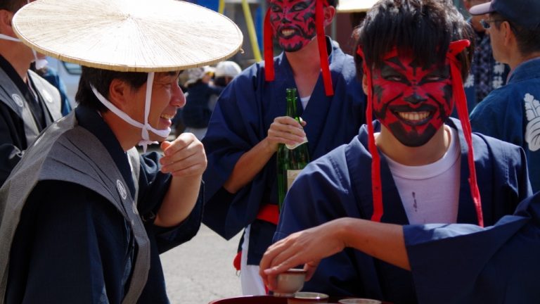 奴と呼ばれる赤い顔の男衆は、「露払い」を先頭に、列の一番前を歩きます。