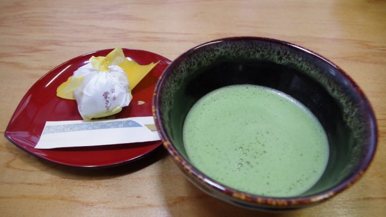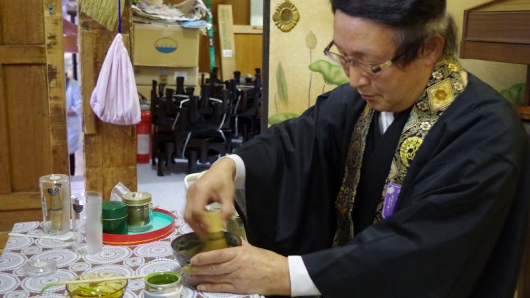 住職さんが、その場でお抹茶を点ててくださいます。
