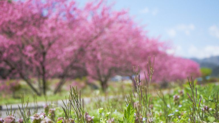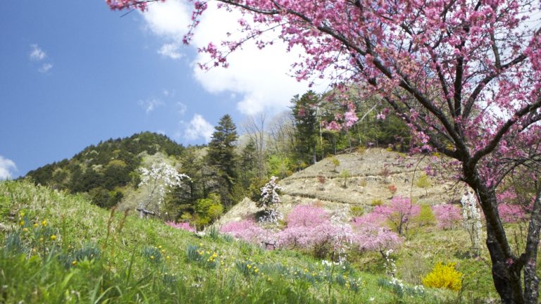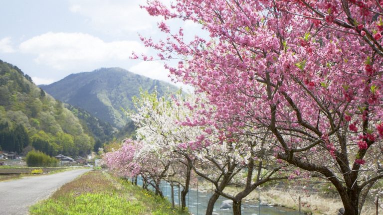 明宝小川地区は“はなもも祭り”。2000以上の花桃が小川の遅めの春を鮮やかに彩ります。