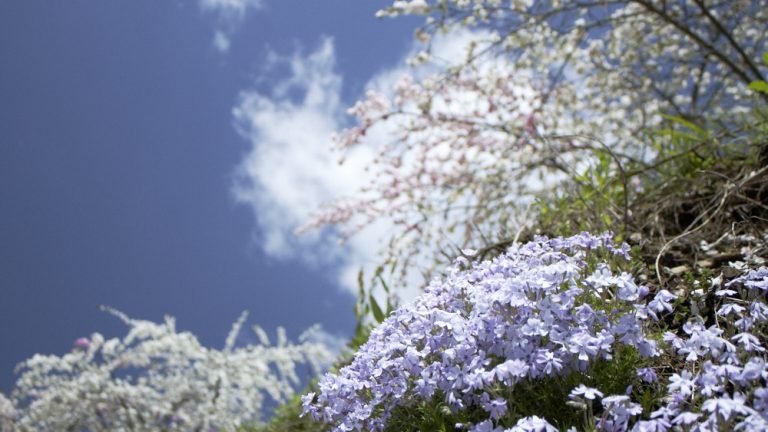 5月、住民のみなさんが一体となって推進する「花いっぱい運動」のおかげで、街道沿いではさまざまな花と香りが楽しめます。