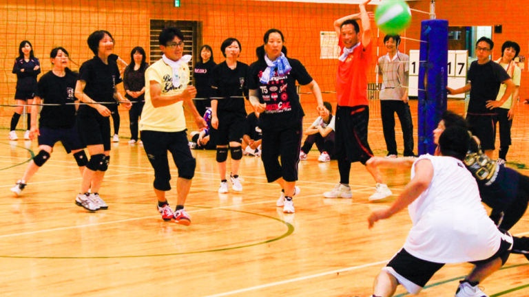 ソフトバレーボールを使用た1セットマッチ。男性はジャンプ禁止のトーナメント制ですが、沢山の試合を楽しめるように工夫されたトーナメントつくりがされており、上位チームには賞状と副賞が授与され、参加者全員に参加賞が与えられます。