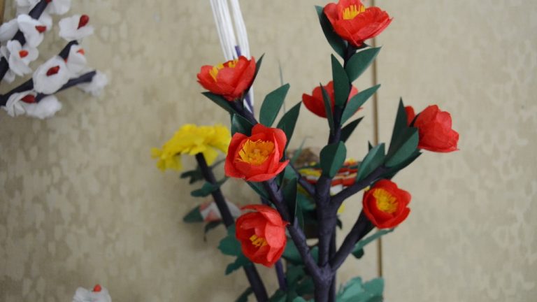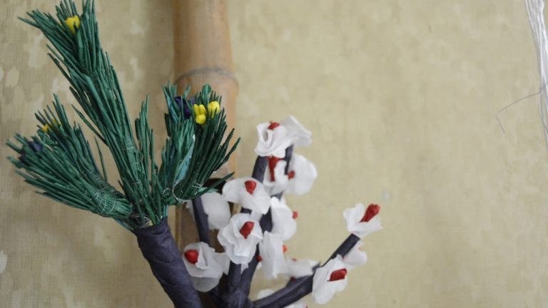 この開催にさきがけ、先日寒水公民館にて祭礼の道具作り「花きり」が行われましたよ!